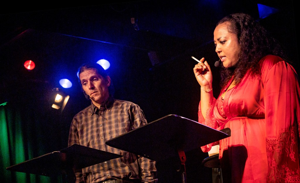 THE ROAD PLAYS by Bob Lind… A CHILD’S CHRISTMAS IN WALES by Dylan Thomas… THE INTERGALACTIC ADVENTURES OF FLASH GORDON; Live Radio Play… THE HIV MONOLOGUES by Patrick Cash… LYRICALLY LEHRER; an Evening of Tomfoolery… THE EVENT by John Clancy… RAPUNZEL – THE LÄND; a Christmas Panto… WHITE RABBIT / WHITE RABBIT by Nassim Soleimanpour… MADE FOR YOU AND ME by Jadi Campbell at the HAUS DER GESCHICHTE Exhibit AMERICAN DREAMS… TALL TALES & SHORT STORIES by Major Manley…SNOWANGEL by Lewis John Carlino… AFRICAN QUEEN by C.S. Forester… LIFE IS A POKER GAME; Raise, Call, or Fold by The Writers in Stuttgart… NEW PROSE, POETRY & SHORT STORIES by Daniel Regelbrugge… ALMOST, MAINE by John Cariani – at FEATS – Festival of European Anglophone Theatrical Societies in Bad Homburg where David Burmedi won the BEST ACTOR AWARD, Elena Gallego was nominated for BEST ACTRESS and the Production won 2nd PRIZE and was invited to perform at the British Drama Festival in Coventry, England