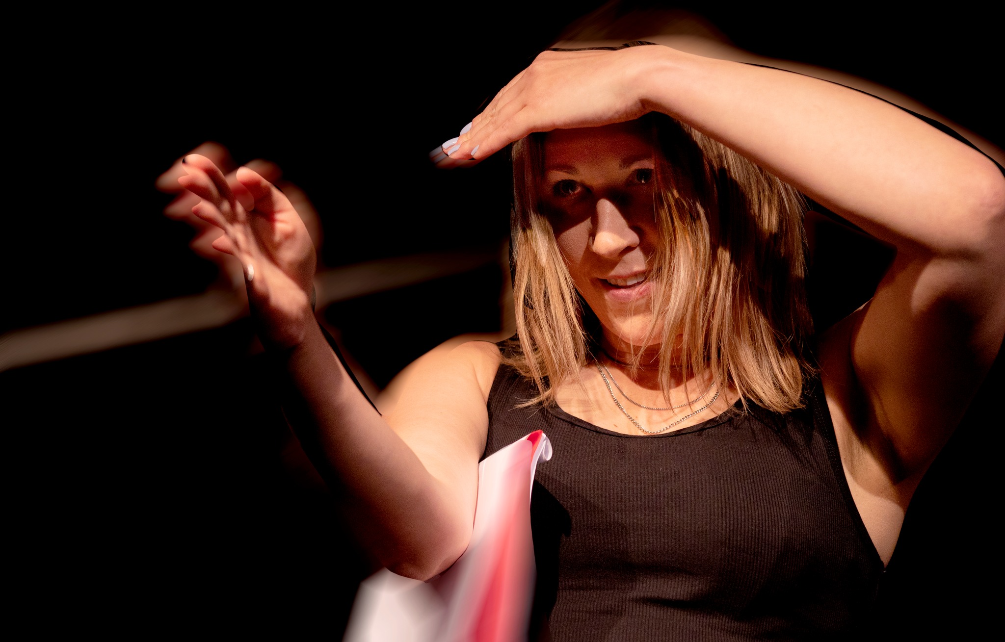 The internationally acclaimed and very unique play WHITE RABBIT / RED RABBIT requires no director, no rehearsals, no set. The stage is bare except for a ladder, a table and a chair. On the table there are two glasses of water and a spoon.