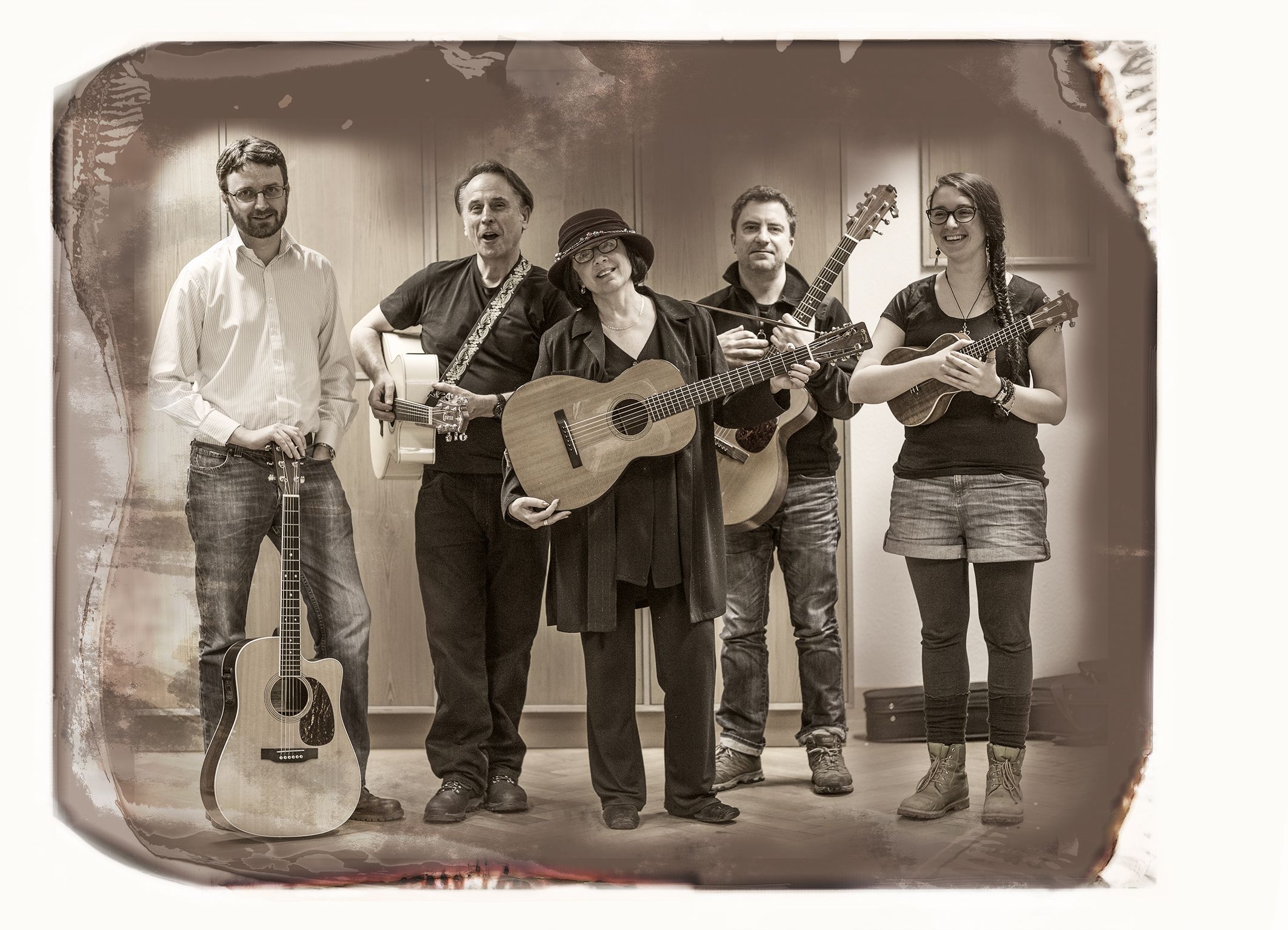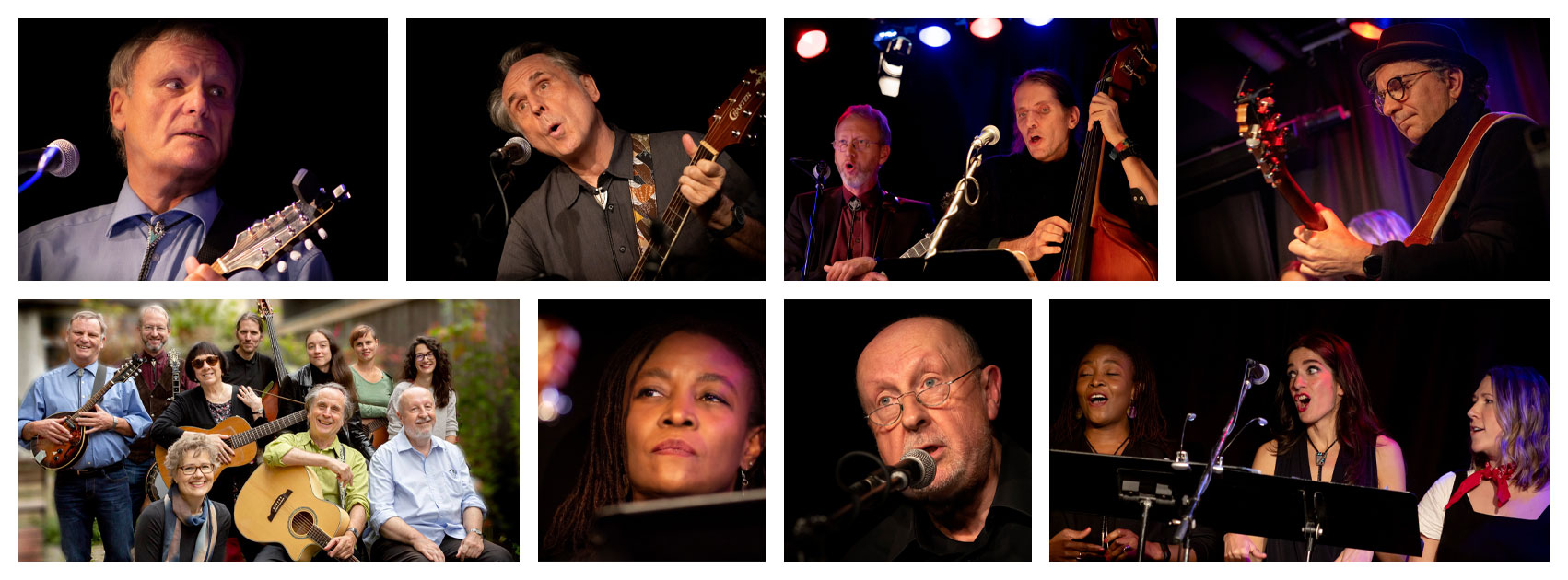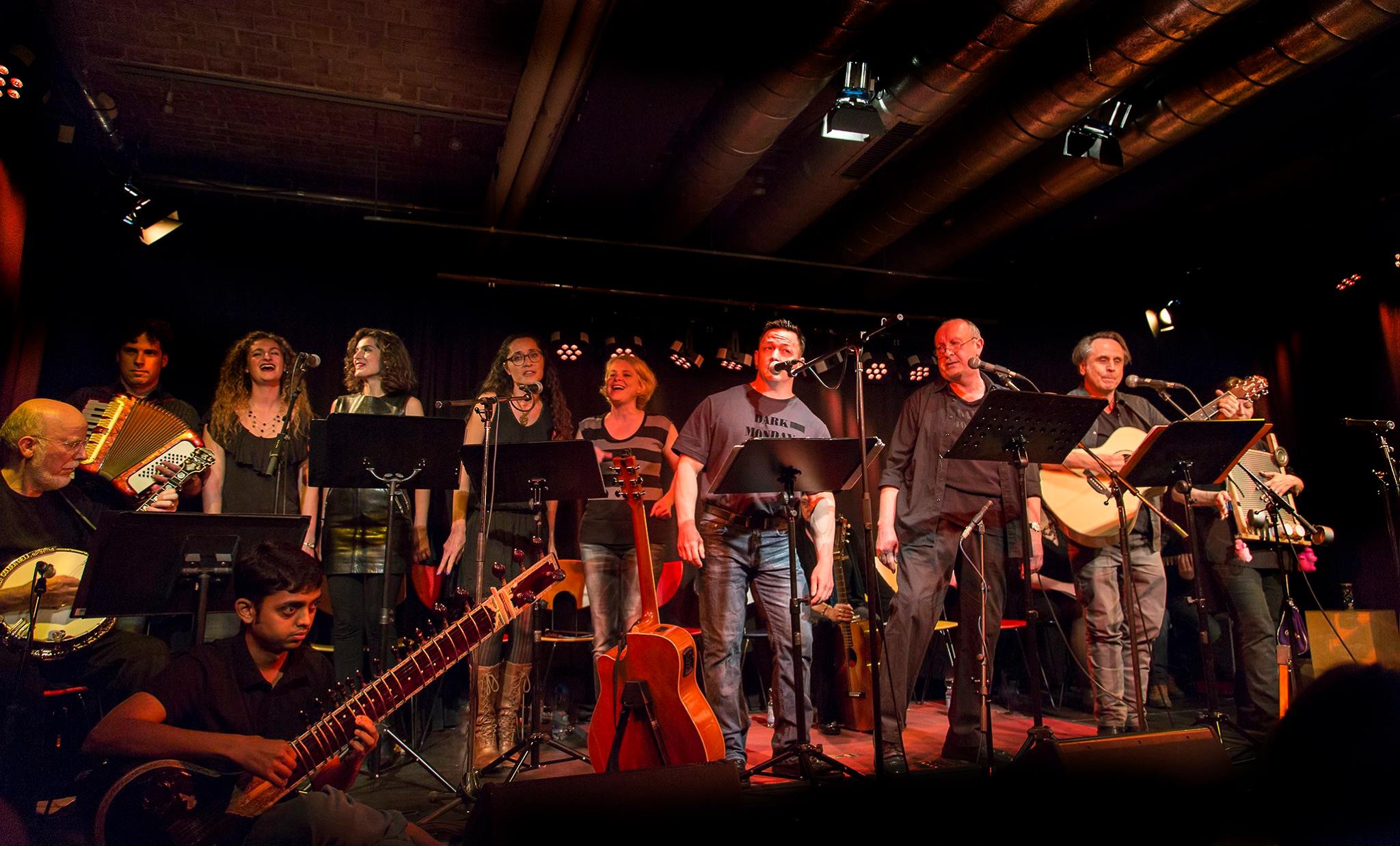 The musical formations involved in these performances have ranged from the The Gershwinites Two After 909, Spiral Running, The Greenwich Village Players, The Stuttgart Harmonizers, The Tolling Thunder Revue, Her & Him, The Woody Sez Orchestra, The Angry Housewives String Quartett, Stäffeles Banjorutscher, and of course The Dark Monday Orchestra.